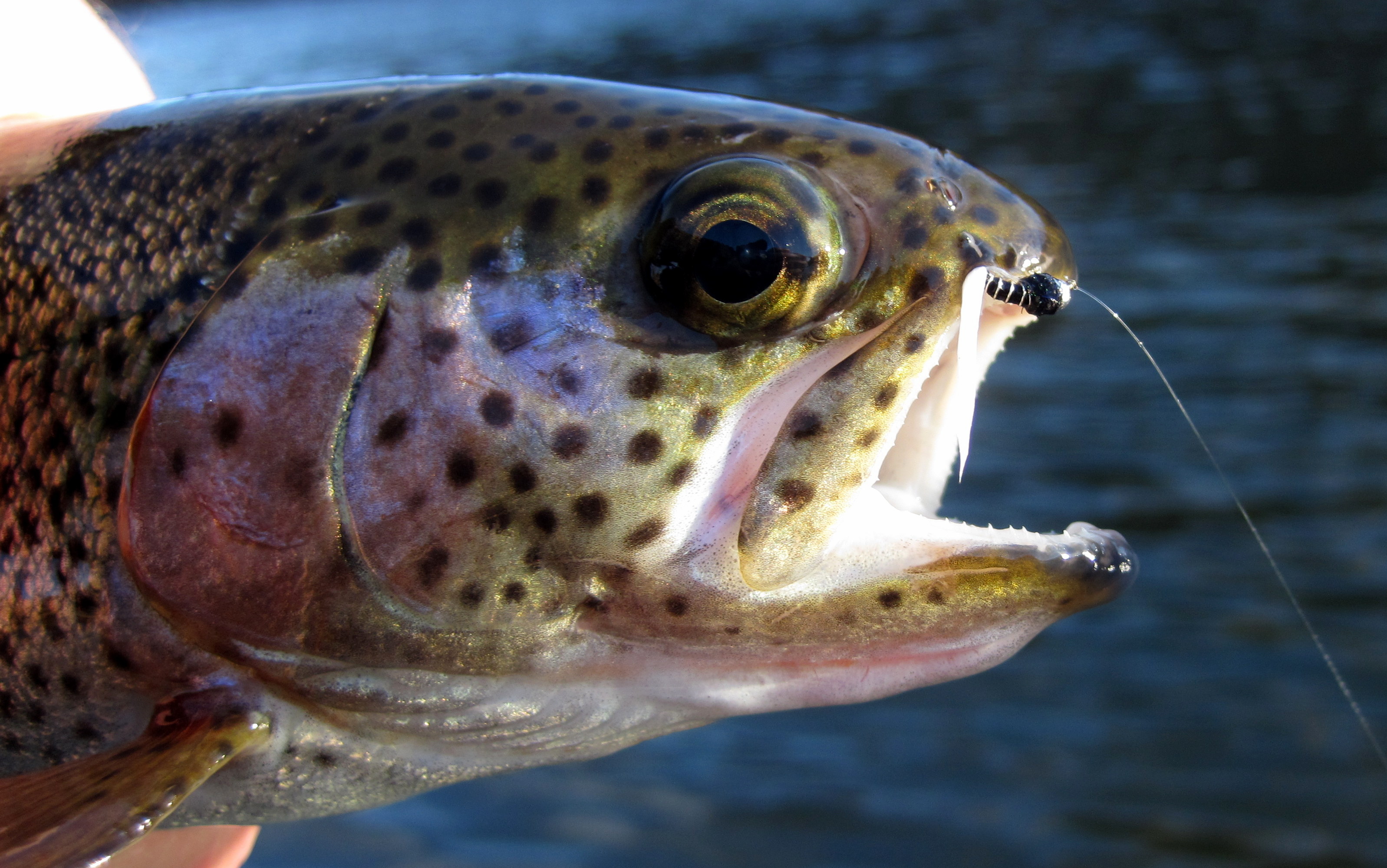 We started out at our hot spot, but the fish weren’t responding like we’ve seen in the past. They were there and active, but we couldn’t find the bug they were keying on. I could catch one on more than half of the flies I tried, but other than the Rootbeer midge I didn’t catch more than one fish on any given fly. After talking with a few fellow fly fishers we found the fish were keying on the scud in either tan or brown color. I didn’t have anything other than gray colors. I was able to get one on the gray, but that was it.