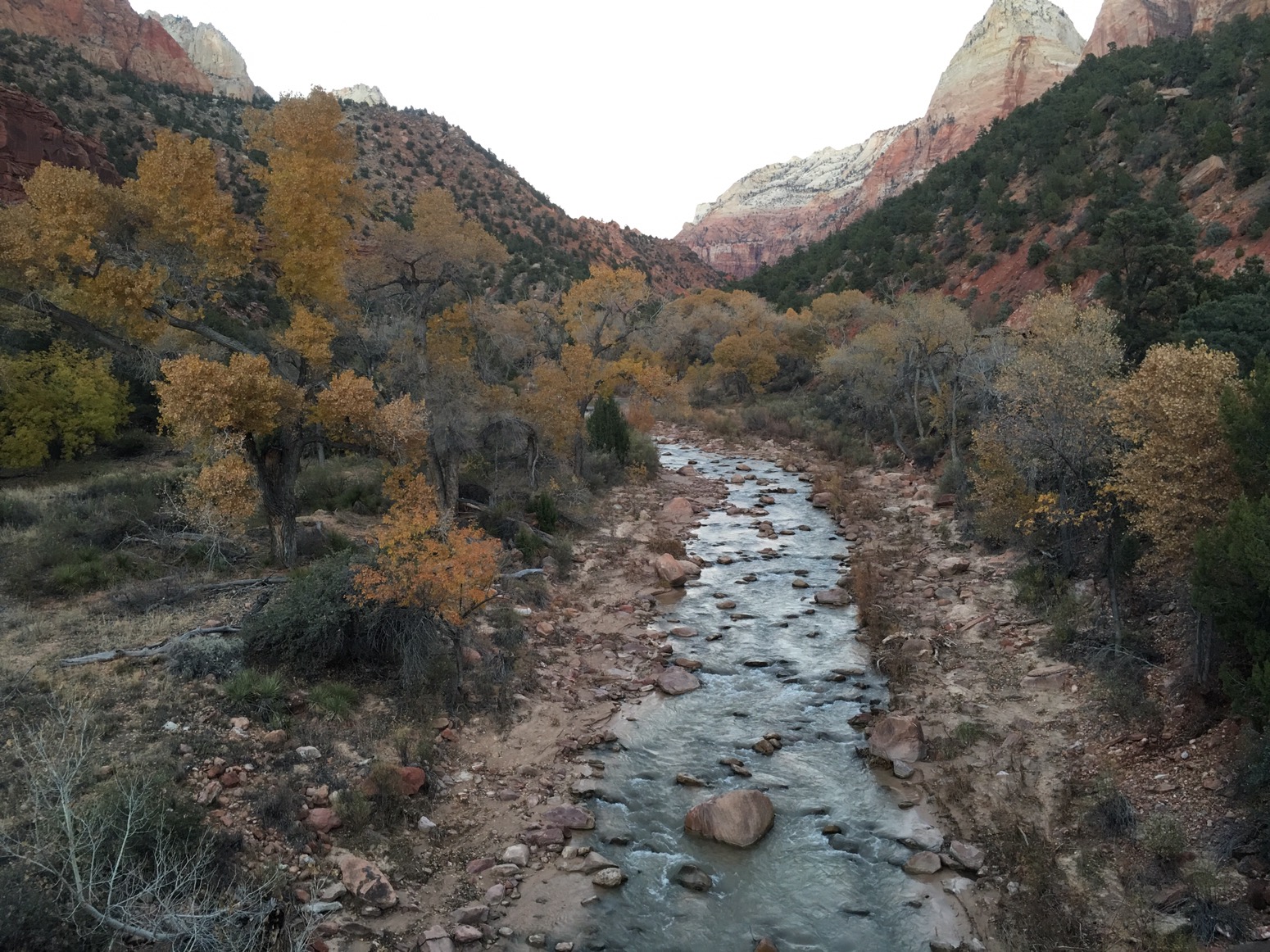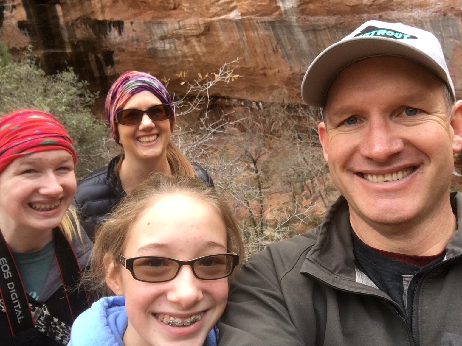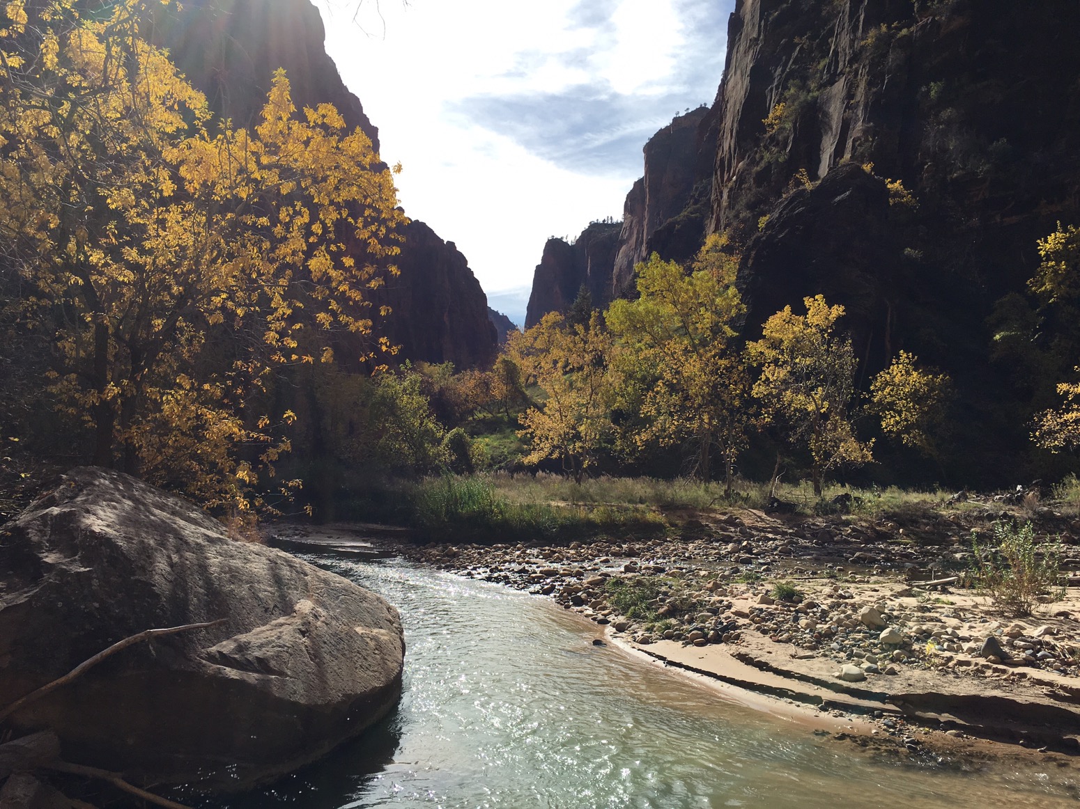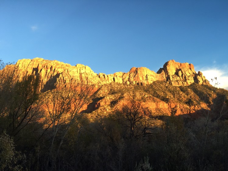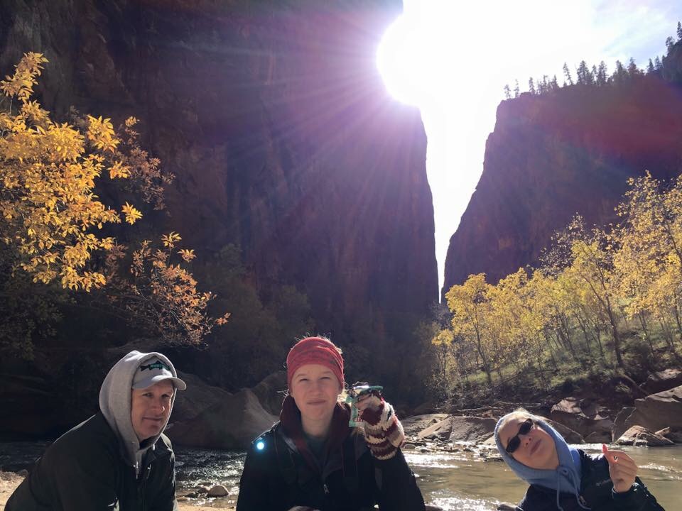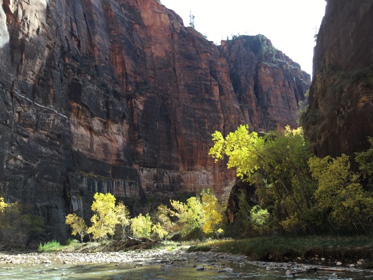 We then headed to Riverside Trail. It is a mile long trail up the side of the Virgin River. Again such a beautiful walk. The cliffs so grand and the water so inviting. Since we were there in late November the air temp was pretty cool and the water as well. You can take a trail up the river at the end of this trail to view the Narrows, but we had to forgo it on this trip. Found out later you can rent waders and boots to walk up the trail and not freeze.