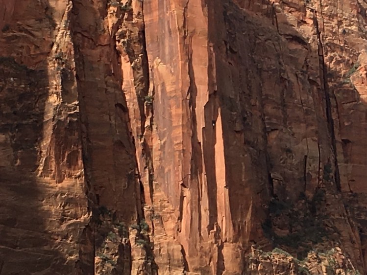 We then headed back down the road and hiked The Emarld Pools trail. This is such a nice hike that is really 3 different hikes in one. You can easily walk to the lower falls which is a nice site. From here you start to make an upward ascent to the middle falls. It’s a bit more narrow and steep, but the views start to be unbelievable at this point. Not only is the immediate surroundings beautiful, but you can look out over the canyon and see the far side. Everything looks so “perfect” it doesn’t even seem real. From here the trail starts to go fairly vertical to get to the upper falls. Again it’s so beautiful. You are high in the middle of the mountain, but the cliff face still climbs hundreds if not a thousand feet above you. The scale is just so unbelievable and so breathtaking.