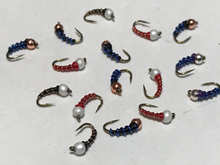The next fly I tried was the red snow cone Midge. Same copper wire and white bead in size 18 but with red thread. It took a little longer to get that first hit, but managed to land 5 with several LDR’s and several misses. They seemed to hit this fly with more caution as it was harder to hook and land the fish. I tried a second weekend and had much better results. Fast to land that first fish and hardly any problems hooking. Probably the best performer the second weekend.