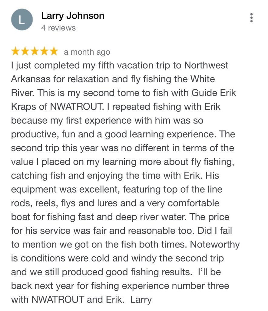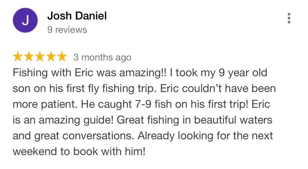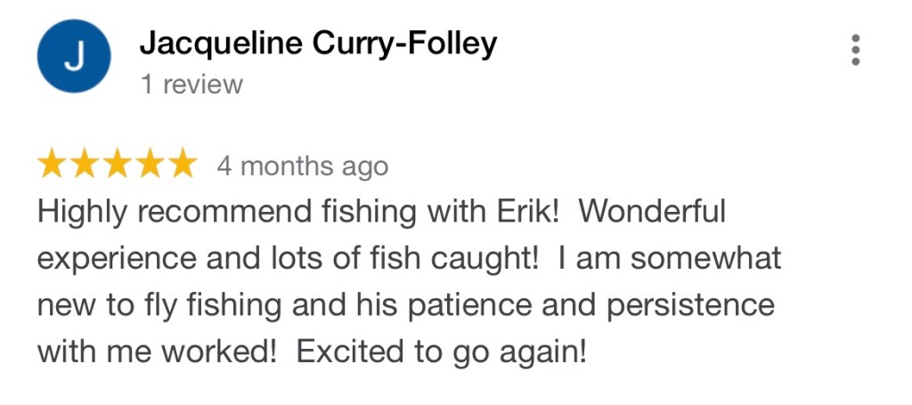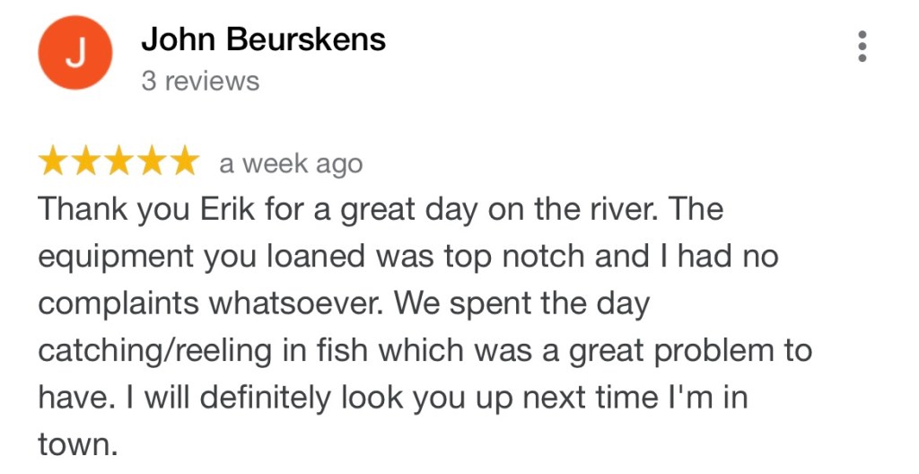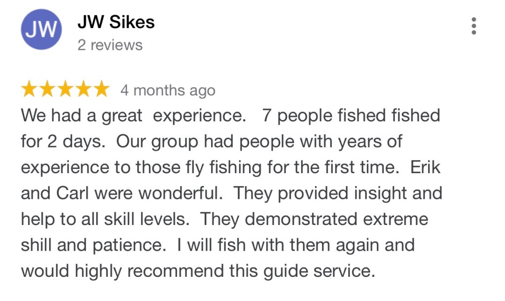 You can read all my reviews on my Google site HERE. Select the REVIEWS section. Below are some excerpts from my awesome clients about their great fishing trips.